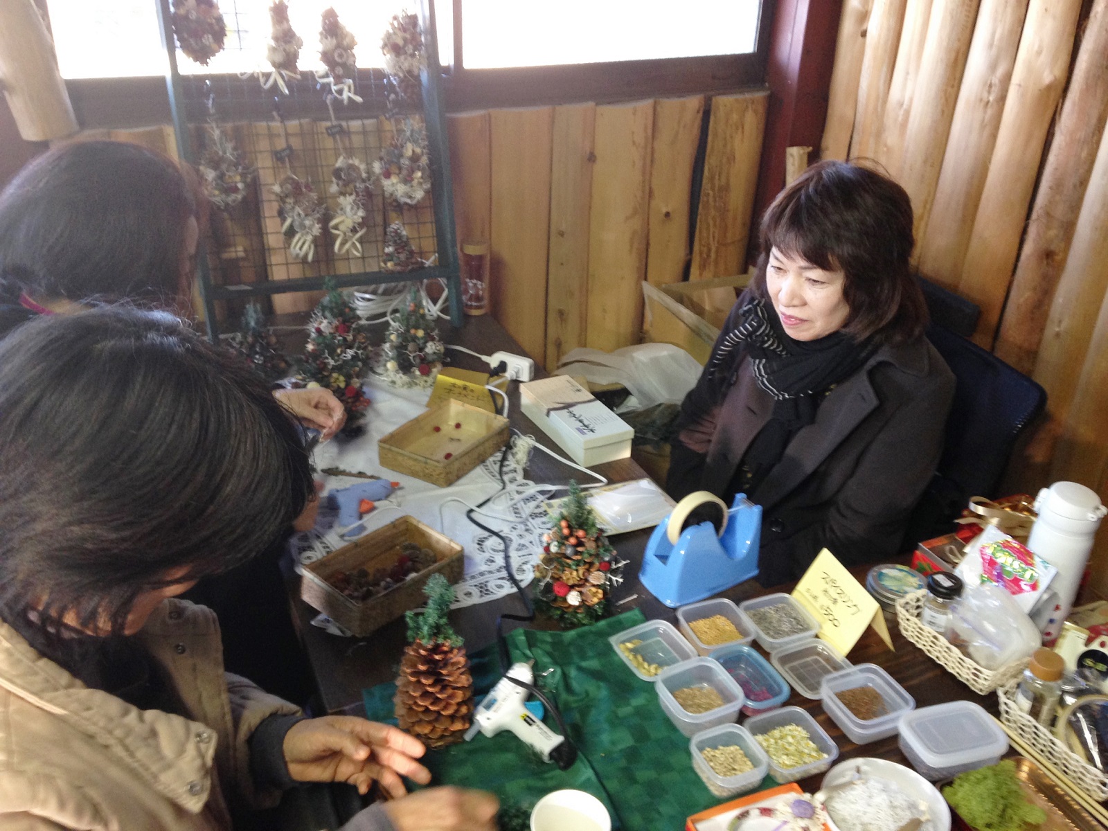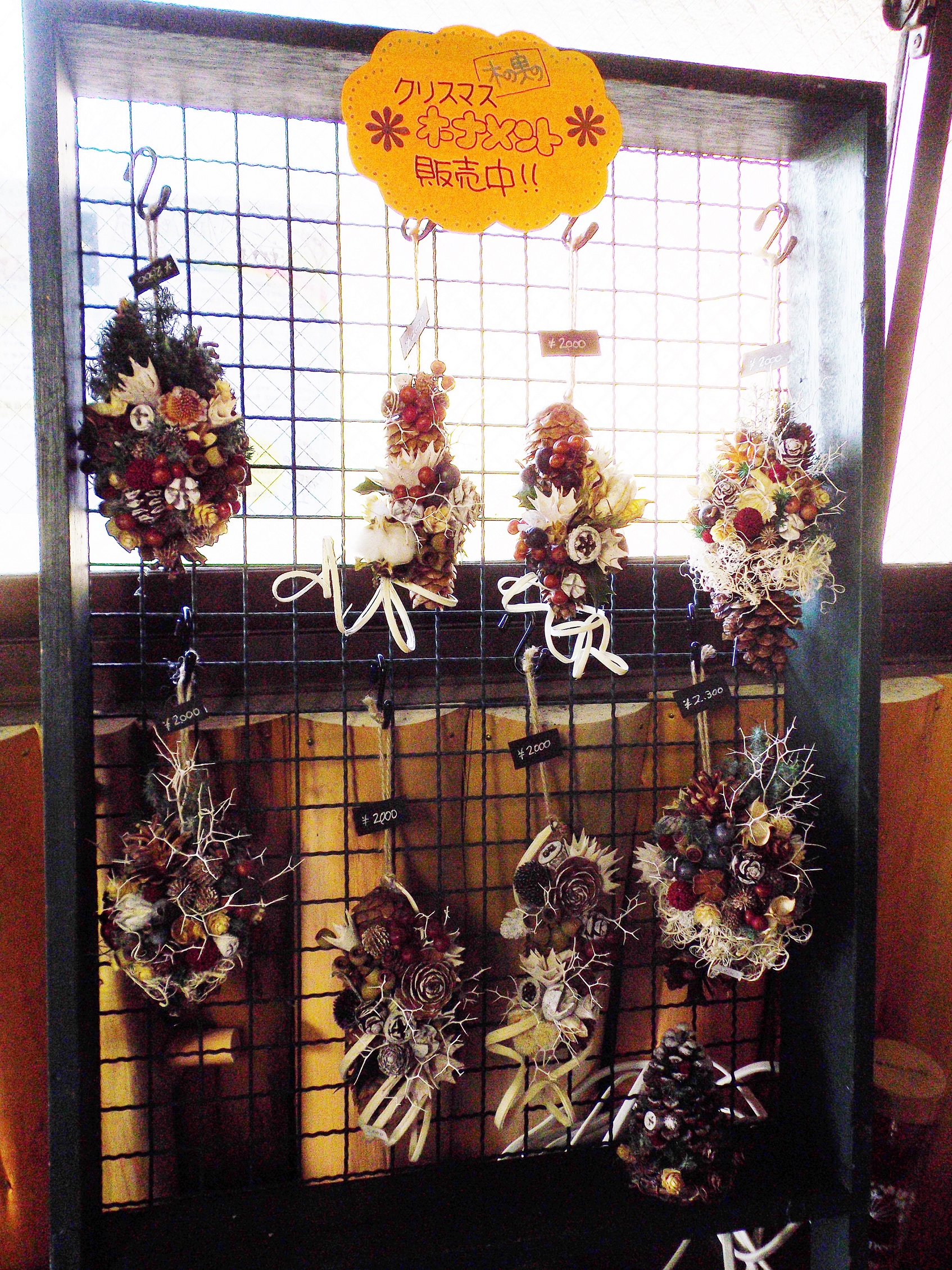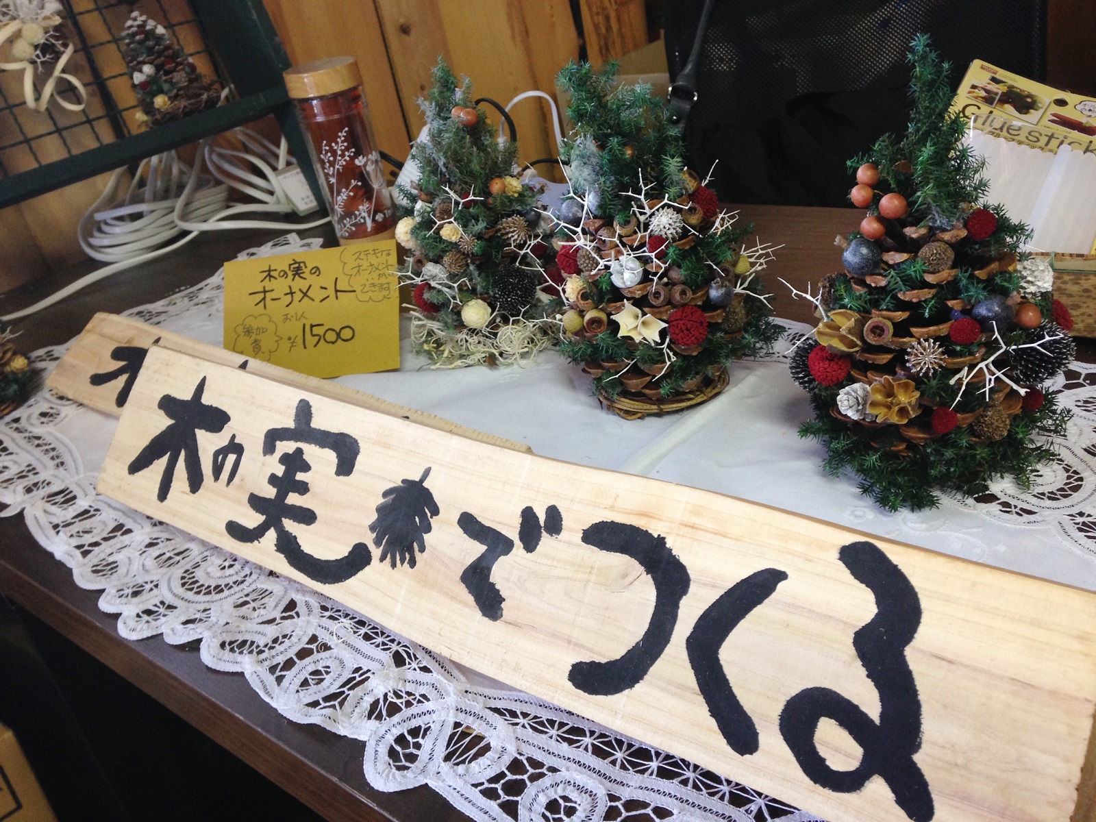店主は「木の実でつくるオーナメント」のワークショップを担当しました。