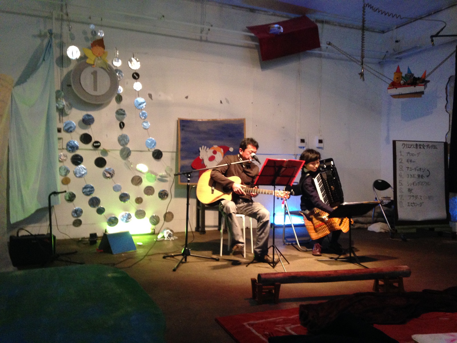 音楽会ではギターやアコーディオン、シンギングなどの演奏会の他、